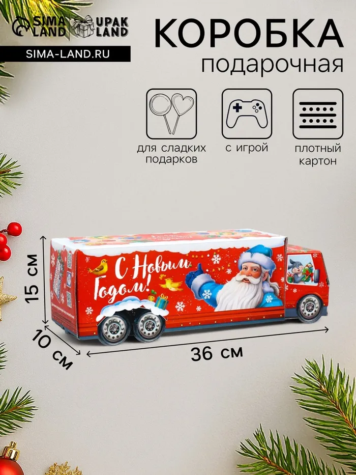 Подарочная коробка Новогодняя Фура «Везу радость» с анимацией 36×15×10 см — Характеристики