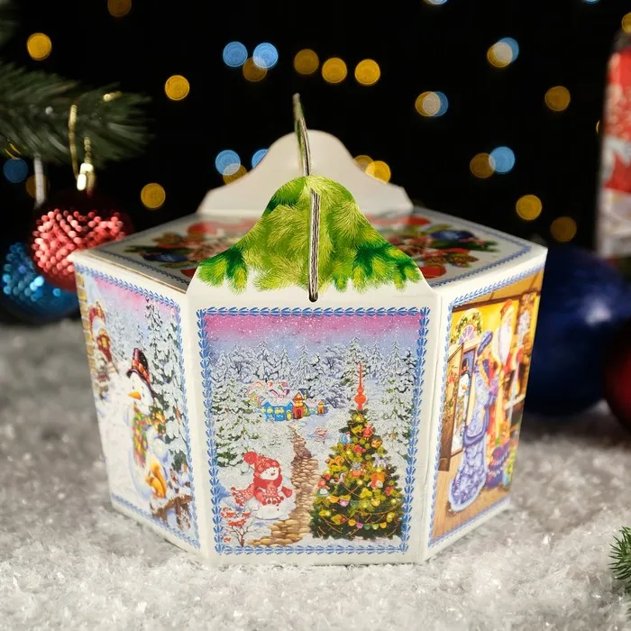 Новый год - время дарить и получать подарки. Детская подарочная коробка предназначена для упаковки конфет, сладких кондитерских наборов, или игрушек. Благодаря своему оригинальному дизайну и привлекательному внешнему виду коробка создаст праздничное настроение ребёнку и не оставит его равнродушным Она легко собирается и выдерживает указанный вес вложения.