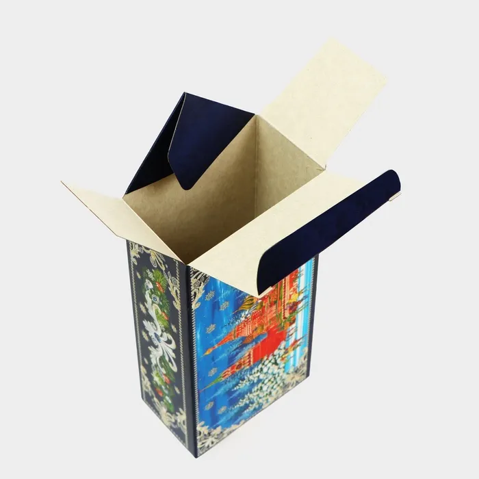 Коробка выполнена из качественных материалов, которые обеспечивают сохранность содержимого. Она имеет яркий и красочный дизайн, который отражает атмосферу Нового года.