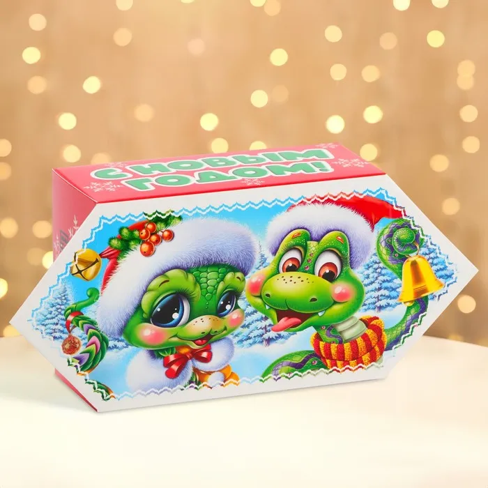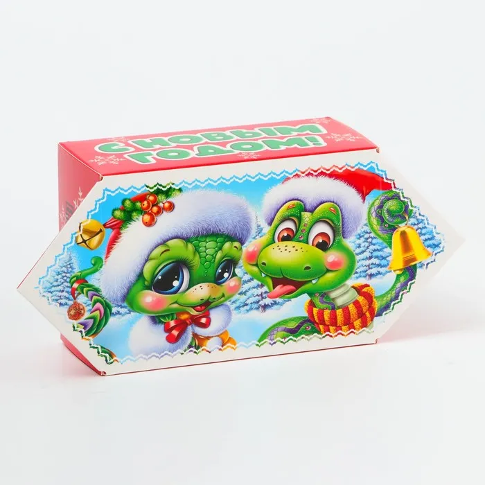 Коробка выполнена из качественных материалов, которые обеспечивают сохранность содержимого. Она имеет яркий и красочный дизайн, который отражает атмосферу Нового года.