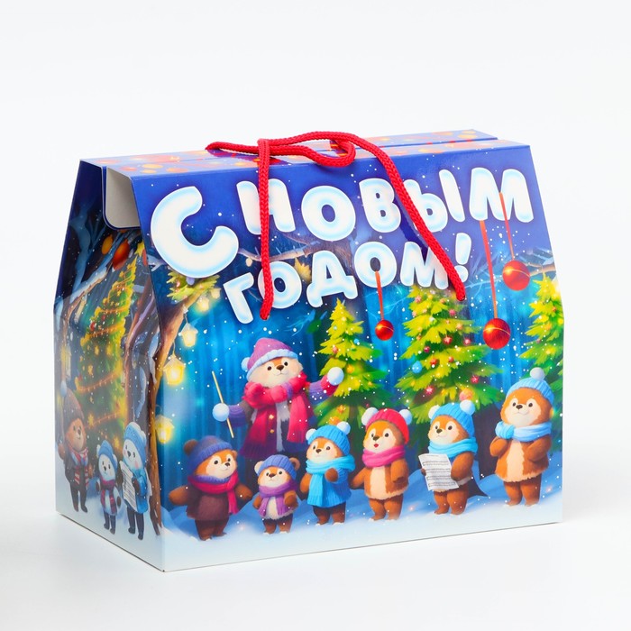 Подарочная коробка Новогодняя Коробка - Кейс «Хор» с верев. ручками с анимацией 20.5×12×18 см