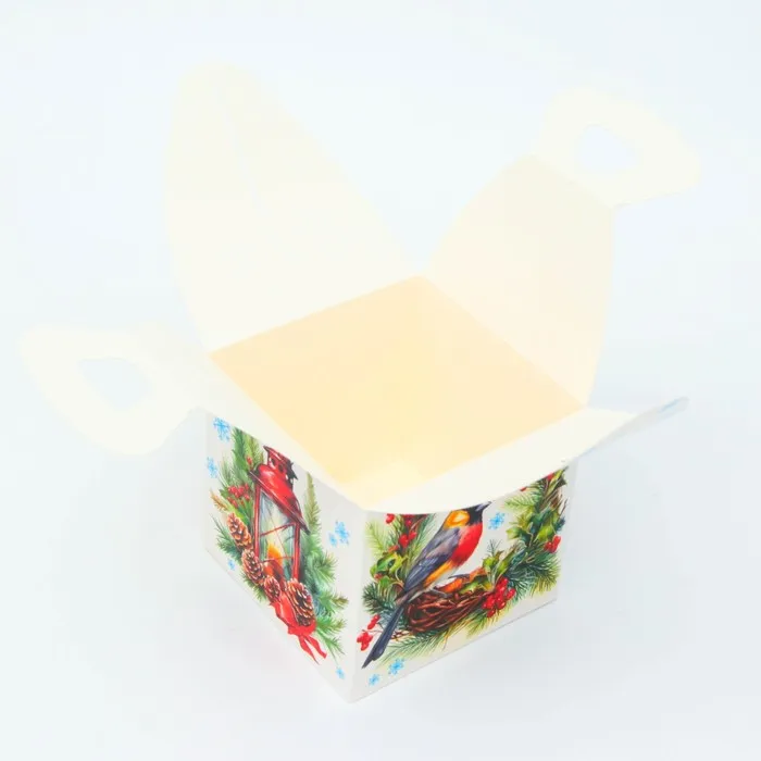 Коробка выполнена из качественных материалов, которые обеспечивают сохранность содержимого. Она имеет яркий и красочный дизайн, который отражает атмосферу Нового года.