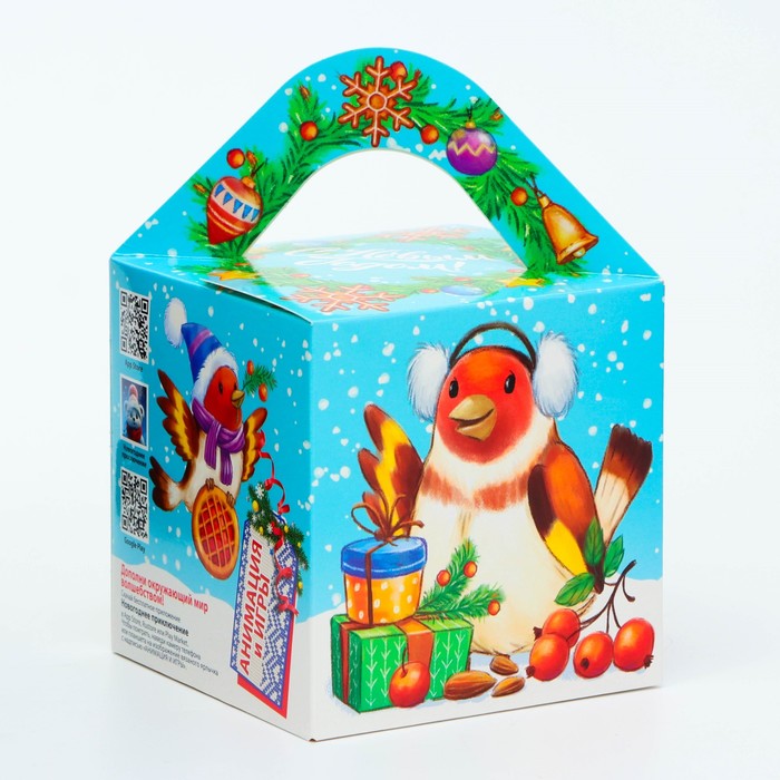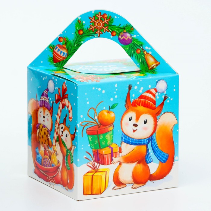 Подарочная коробка Новогодняя Кубик большой «Бельчата» с анимацией 12×12×12 см — Характеристики