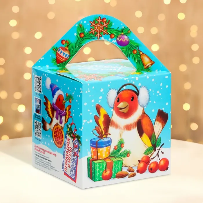 Коробка выполнена из качественных материалов, которые обеспечивают сохранность содержимого. Она имеет яркий и красочный дизайн, который отражает атмосферу Нового года.