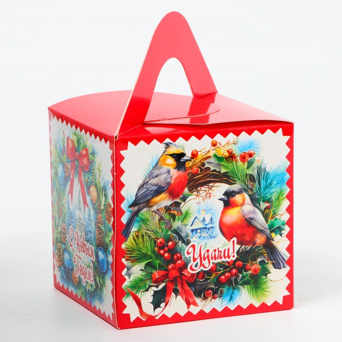 Коробка выполнена из качественных материалов, которые обеспечивают сохранность содержимого. Она имеет яркий и красочный дизайн, который отражает атмосферу Нового года.