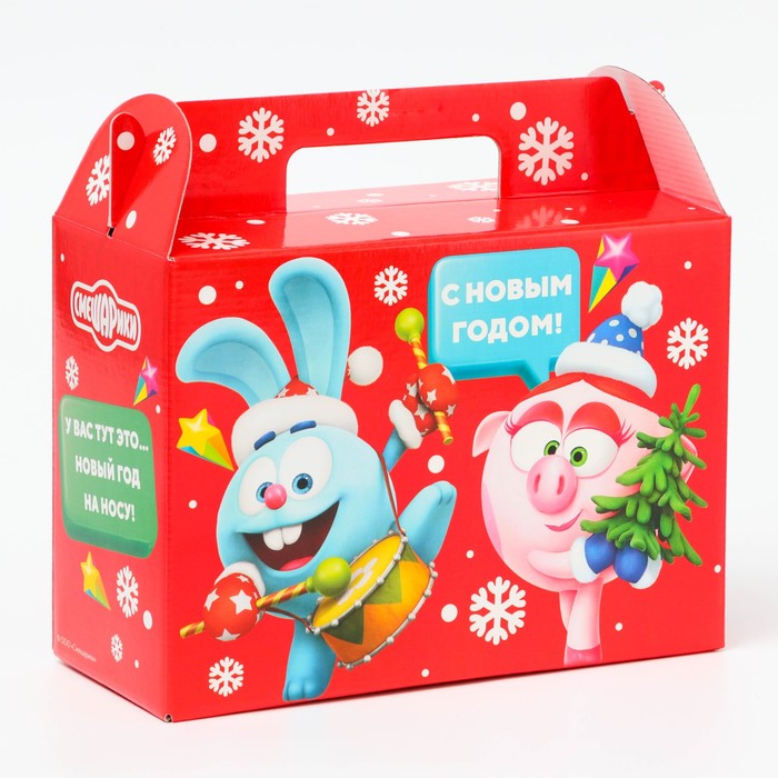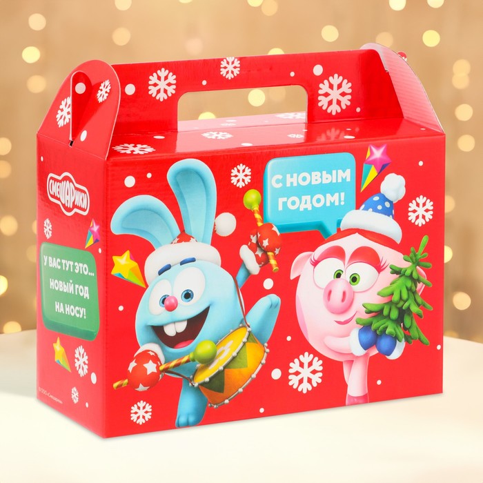 Подарочная коробка Новогодняя Ларец простой «Смешарики» лицензия 23×10×16.5 см (+4.5 см). — Характеристики