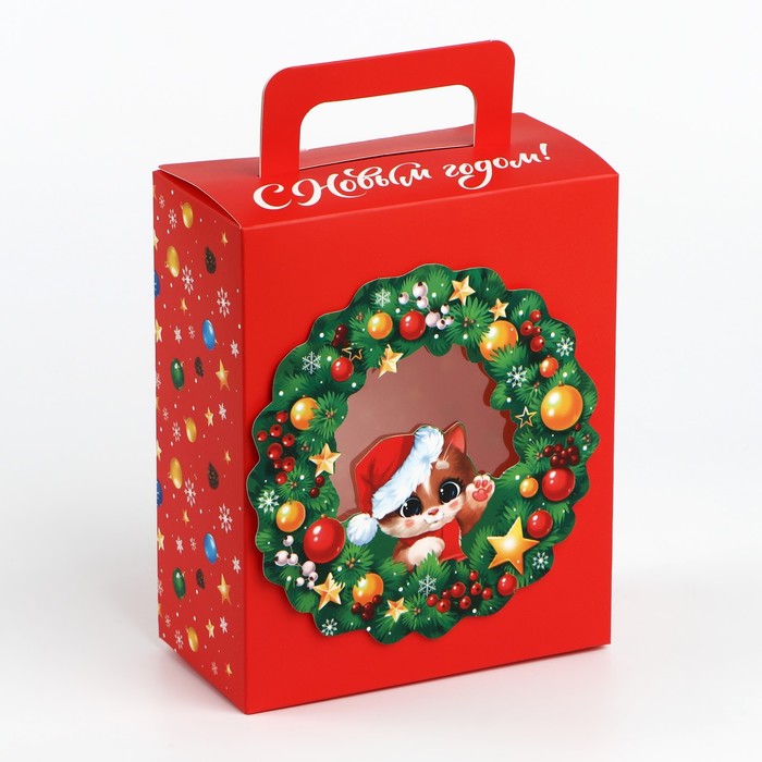 Подарочная коробка новогодняя новогодняя складная с 3D эффектом «Новогодний венок», 18 x 15 x 7.5 см
