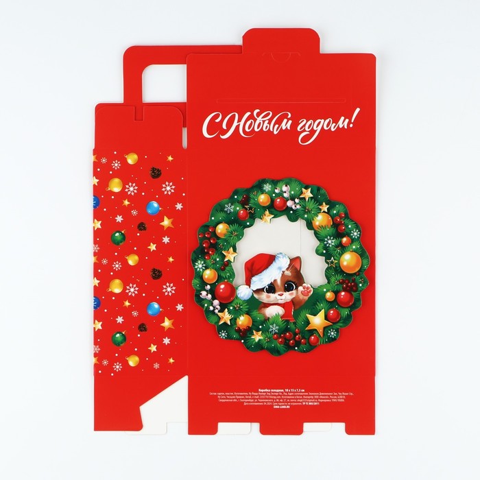 Подарочная коробка новогодняя новогодняя складная с 3D эффектом «Новогодний венок», 18 x 15 x 7.5 см — Характеристики