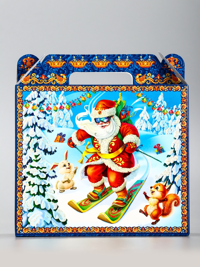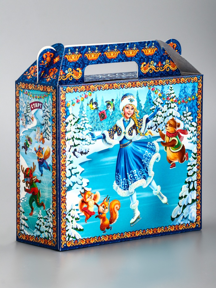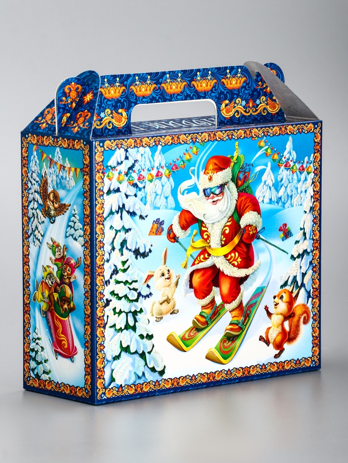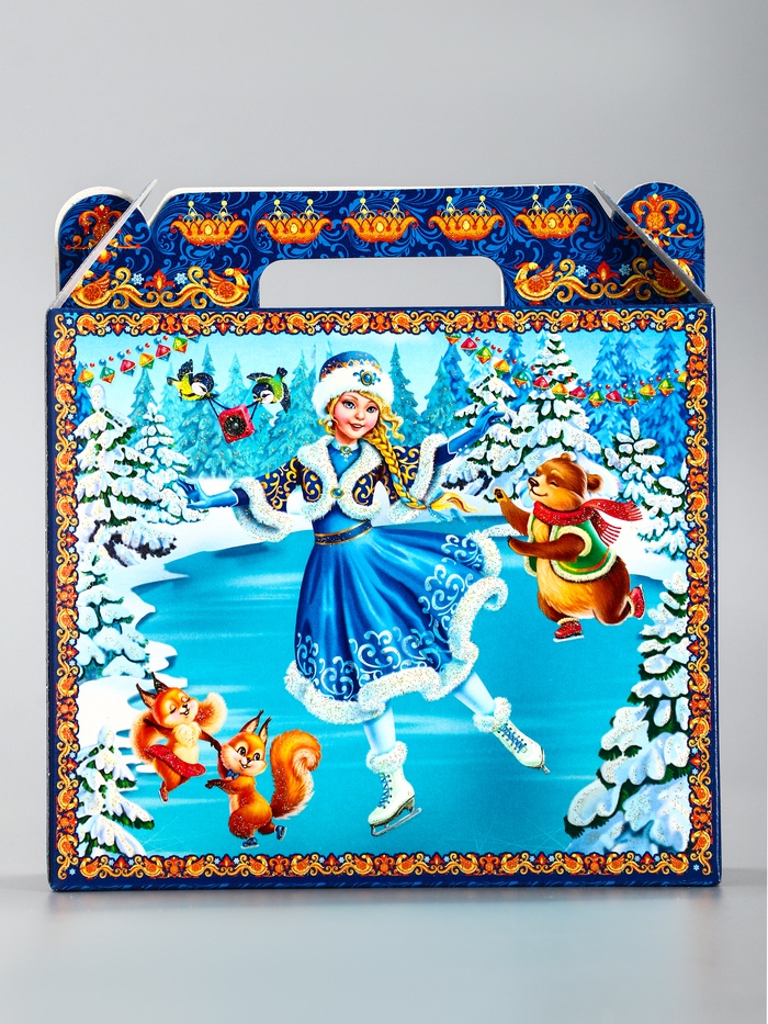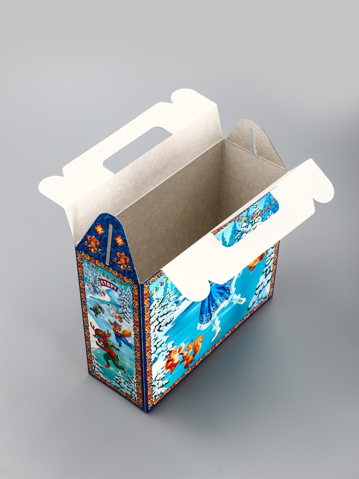 Создайте элегантный новогодний подарок! Коробка «Олимпиада» — это стильная упаковка в виде прямоугольного сундучка для сладостей и сувениров. Классическое сочетание синего и голубого цветов с зимней тематикой подчеркивает праздничное настроение.
