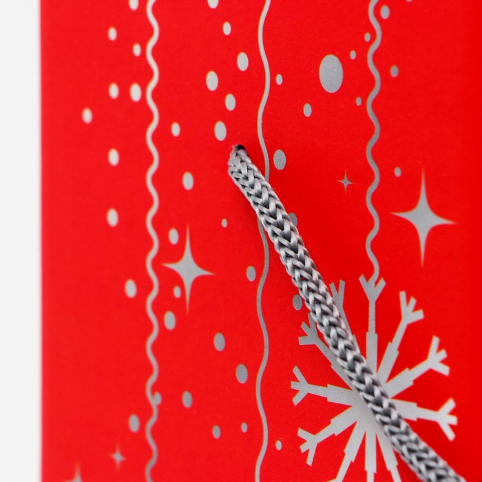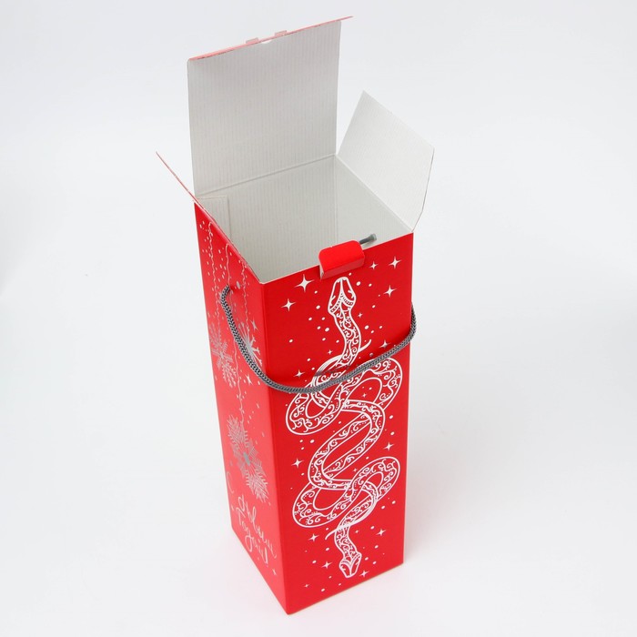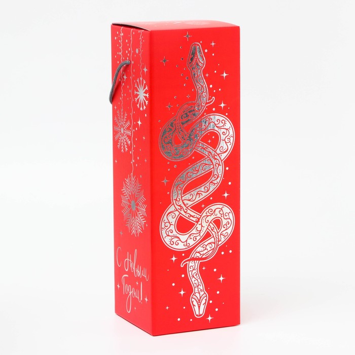 Подарочная коробка Новогодняя, под шампанское «Змея на красном Символ года» с веревоч. ручкой 11×11×35 см — Характеристики