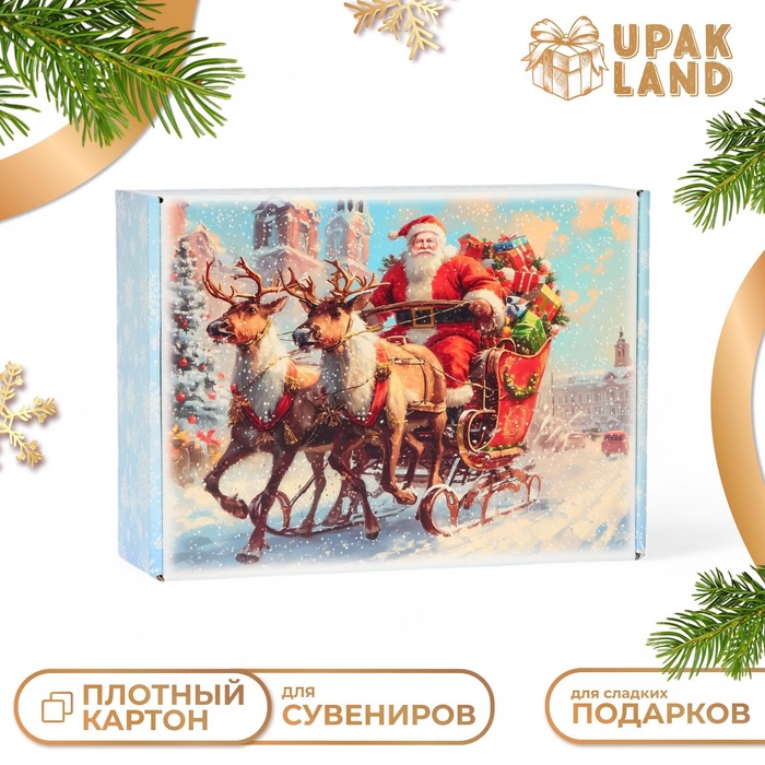 Коробка выполнена из качественных материалов, которые обеспечивают сохранность содержимого. Она имеет яркий и красочный дизайн, который отражает атмосферу Нового года.