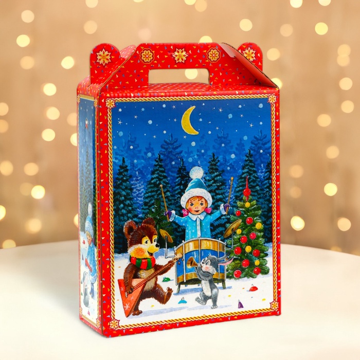 Коробка выполнена из качественных материалов, которые обеспечивают сохранность содержимого. Она имеет яркий и красочный дизайн, который отражает атмосферу Нового года.