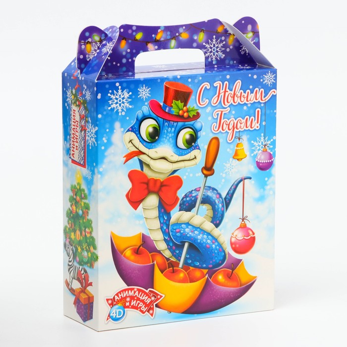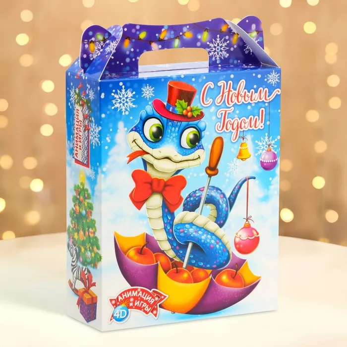 Подарочная коробка Новогодняя ПОДАРОК ХРОМ «Змейки» с анимацией 17×6.8×20.8 см — Характеристики