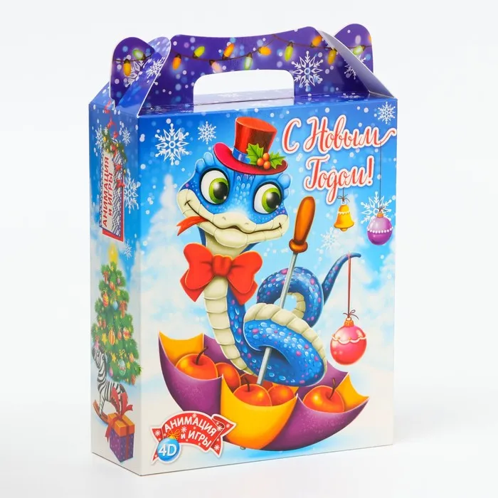 Подарочная новогодняя коробка предназначена для использования на утренниках и для подарков под ёлку для детей. Эта коробка создана специально для того, чтобы сделать праздник еще более ярким и запоминающимся.