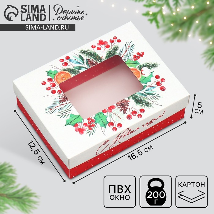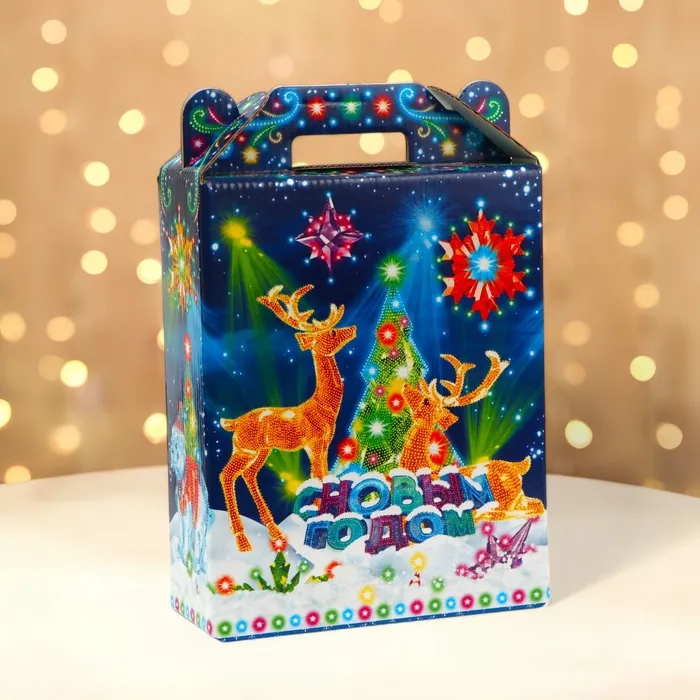 Коробка выполнена из качественных материалов, которые обеспечивают сохранность содержимого. Она имеет яркий и красочный дизайн, который отражает атмосферу Нового года.