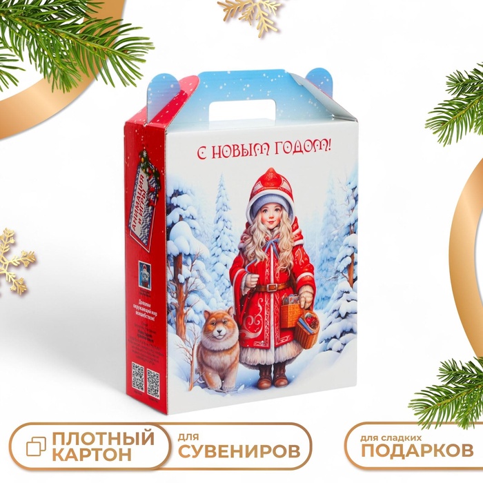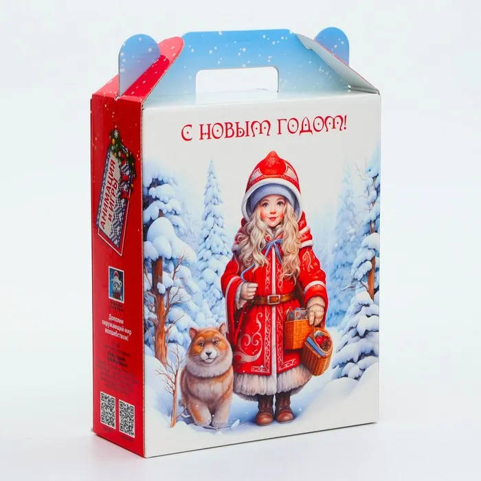 Коробка выполнена из качественных материалов, которые обеспечивают сохранность содержимого. Она имеет яркий и красочный дизайн, который отражает атмосферу Нового года.