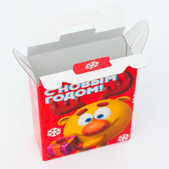 Коробка выполнена из качественных материалов, которые обеспечивают сохранность содержимого. Она имеет яркий и красочный дизайн, который отражает атмосферу Нового года.