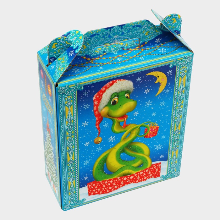 Коробка выполнена из качественных материалов, которые обеспечивают сохранность содержимого. Она имеет яркий и красочный дизайн, который отражает атмосферу Нового года.