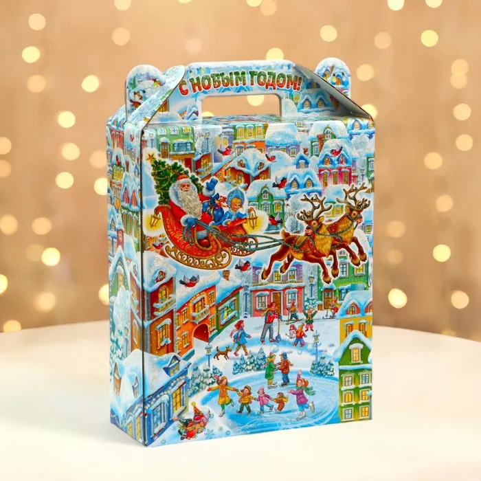 Коробка выполнена из качественных материалов, которые обеспечивают сохранность содержимого. Она имеет яркий и красочный дизайн, который отражает атмосферу Нового года.