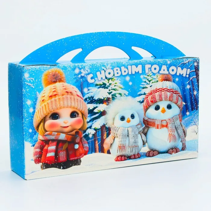 Коробка выполнена из качественных материалов, которые обеспечивают сохранность содержимого. Она имеет яркий и красочный дизайн, который отражает атмосферу Нового года.