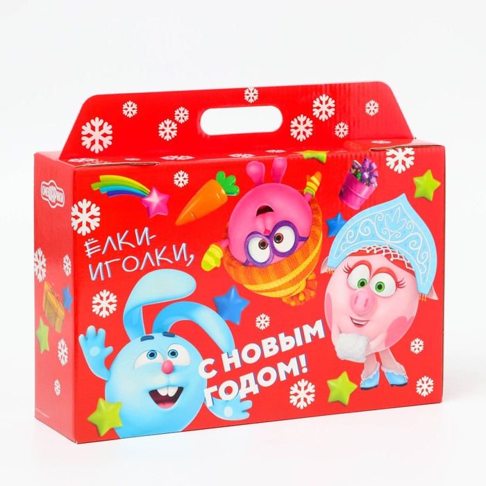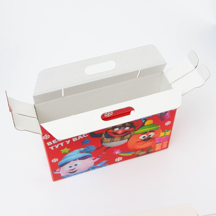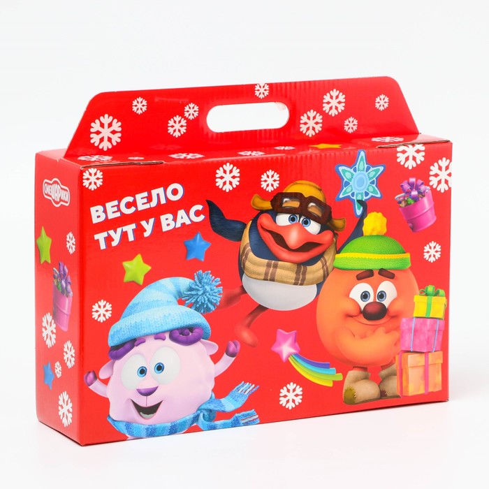 Подарочная коробка Новогодняя Портфель широкий «Смешарики» лицензия 31×8.5×20.3 см (+5 см). — Характеристики
