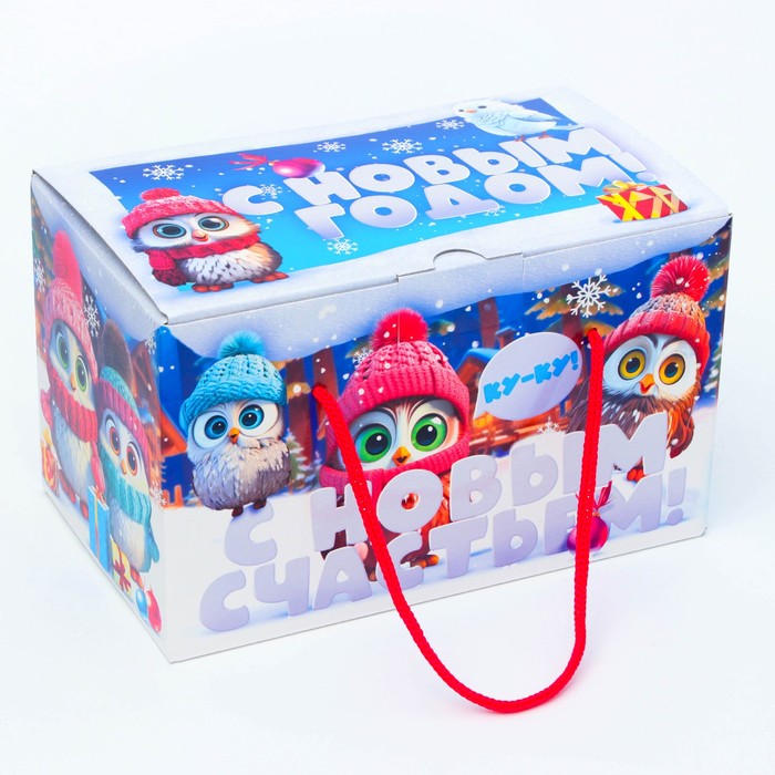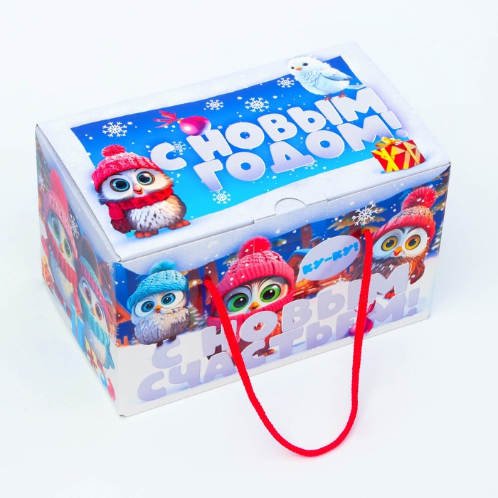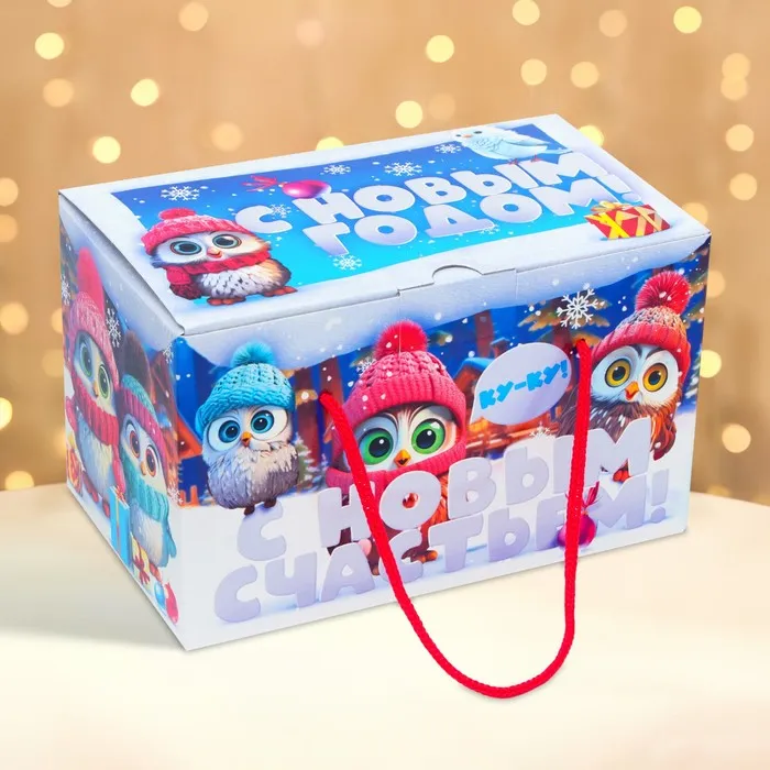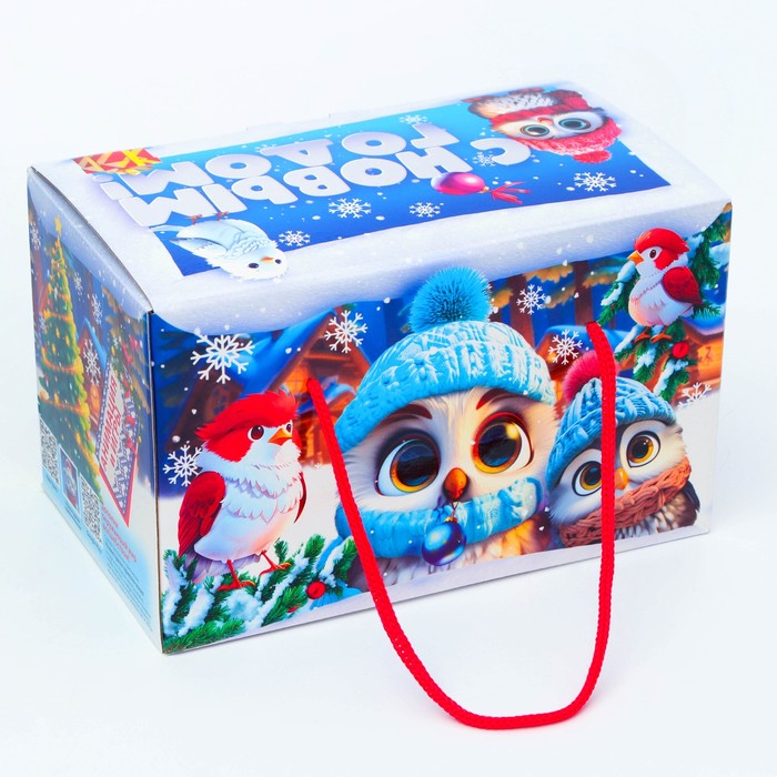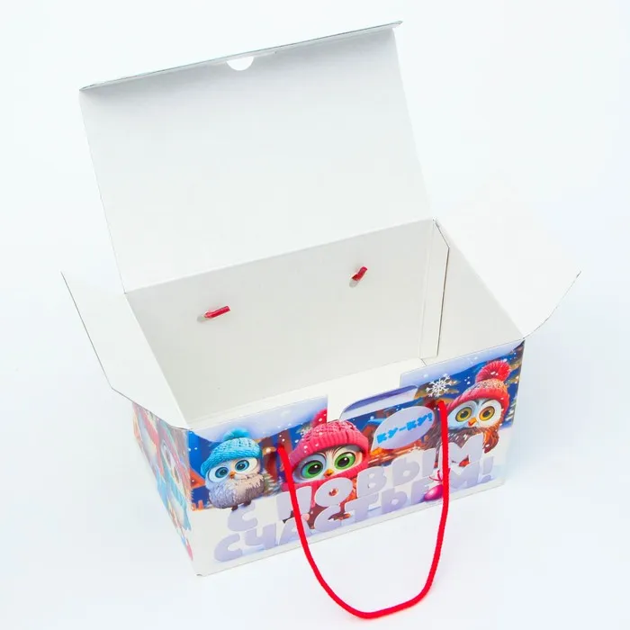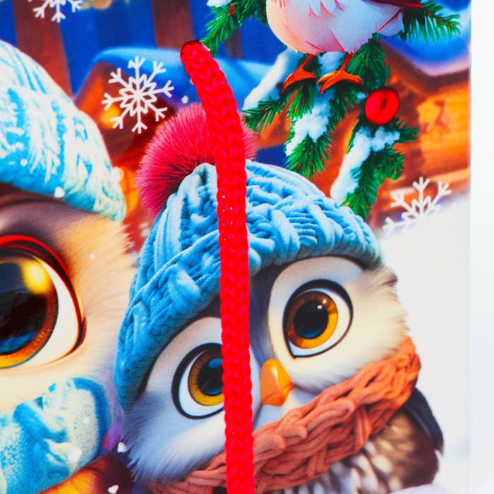 Подарочная коробка Новогодняя Посылка «Совята» с веревочными ручками с анимацией 20×12 см — Характеристики