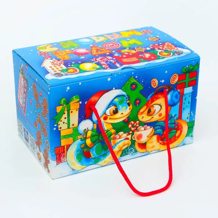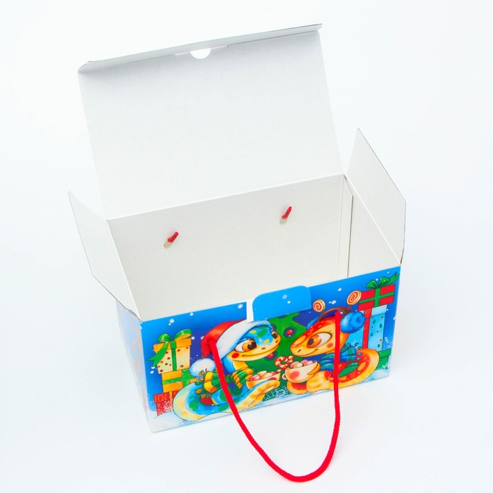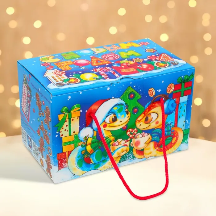 Подарочная коробка Новогодняя Посылка «Змеята» с веревочными ручками с анимацией 20×12 см — Характеристики