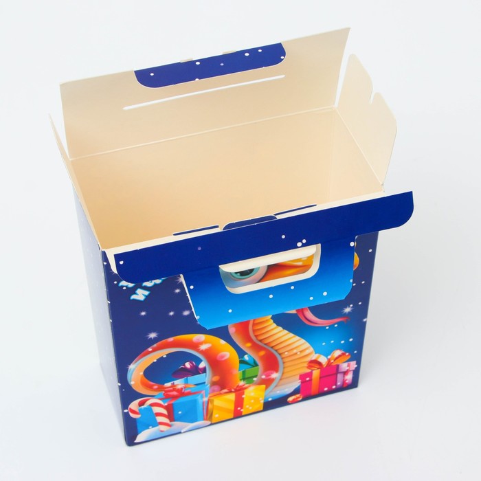 Подарочная новогодняя коробка предназначена для использования на утренниках и для подарков под ёлку для детей. Эта коробка создана специально для того, чтобы сделать праздник еще более ярким и запоминающимся.
