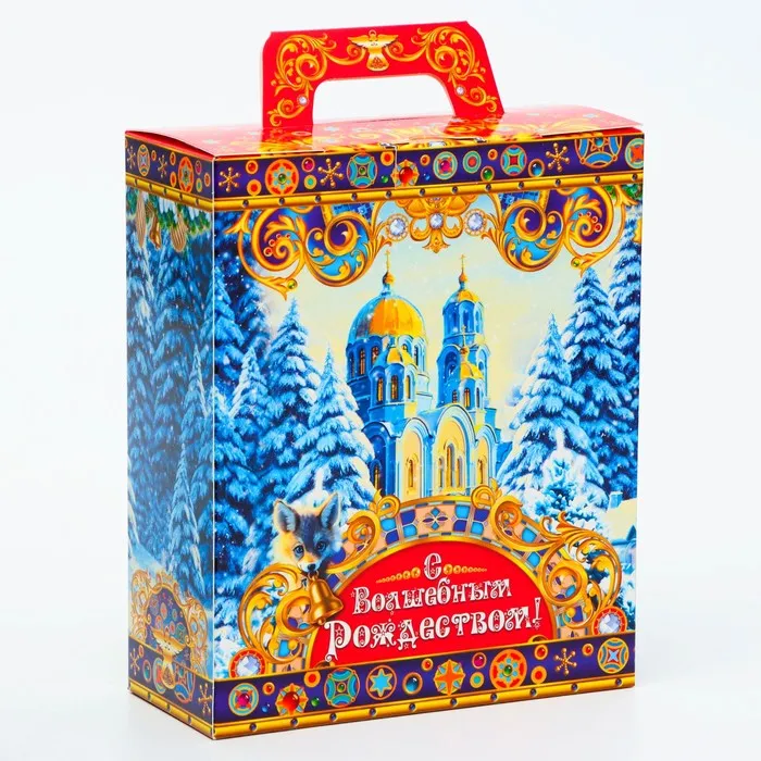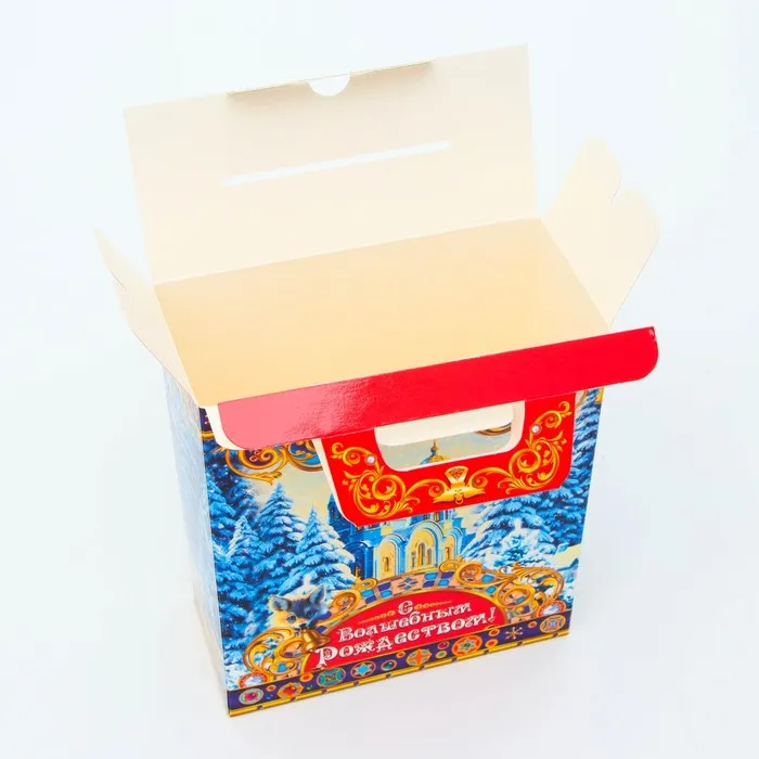 Коробка выполнена из качественных материалов, которые обеспечивают сохранность содержимого. Она имеет яркий и красочный дизайн, который отражает атмосферу Нового года.