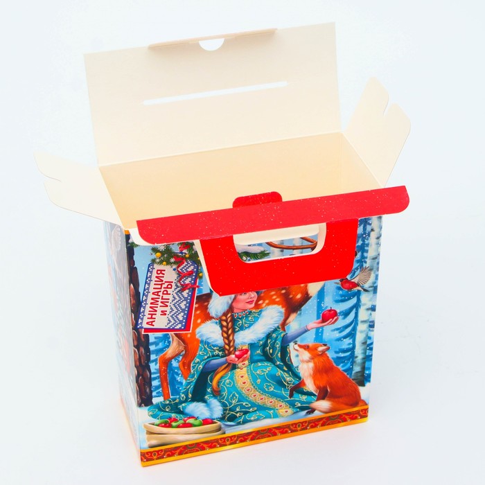 Подарочная коробка Новогодняя Презент «В гостях у сказки» с анимацией 15.5×7×19 см — Характеристики
