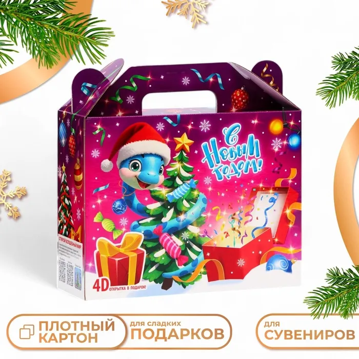 Коробка выполнена из качественных материалов, которые обеспечивают сохранность содержимого. Она имеет яркий и красочный дизайн, который отражает атмосферу Нового года.