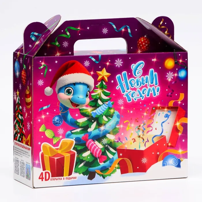 Подарочная новогодняя коробка предназначена для использования на утренниках и для подарков под ёлку для детей. Эта коробка создана специально для того, чтобы сделать праздник еще более ярким и запоминающимся.