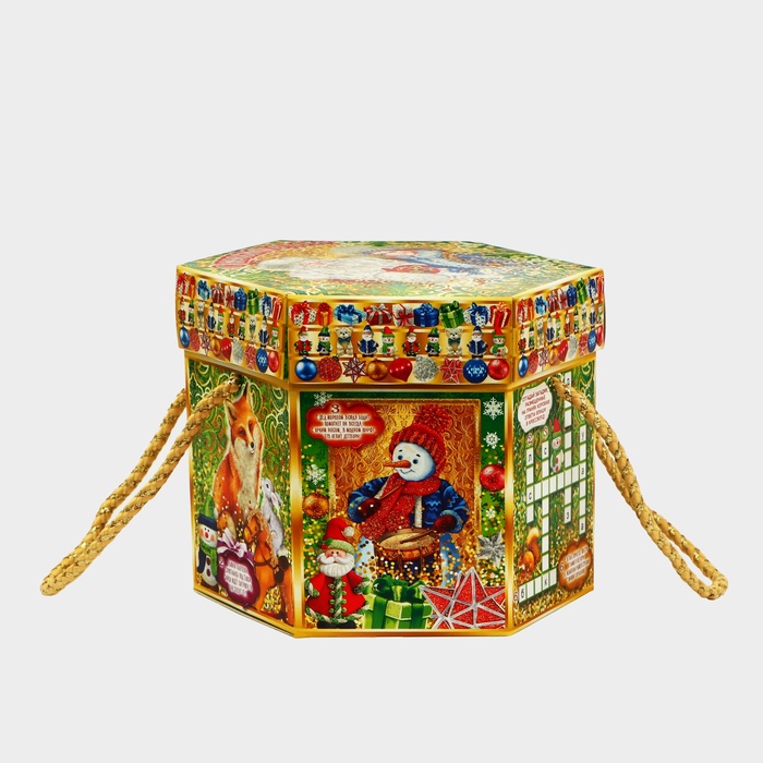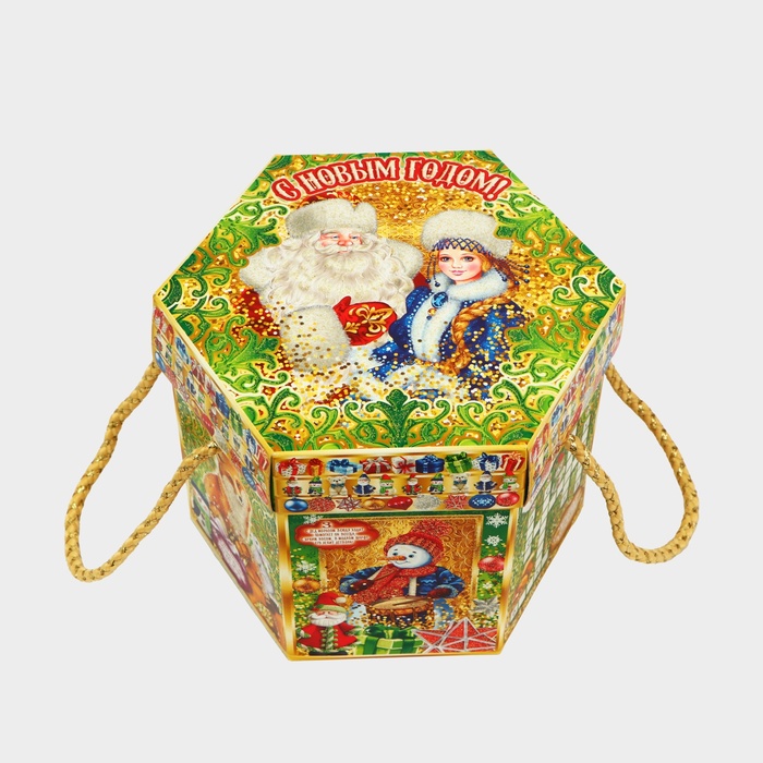 Коробка выполнена из качественных материалов, которые обеспечивают сохранность содержимого. Она имеет яркий и красочный дизайн, который отражает атмосферу Нового года.