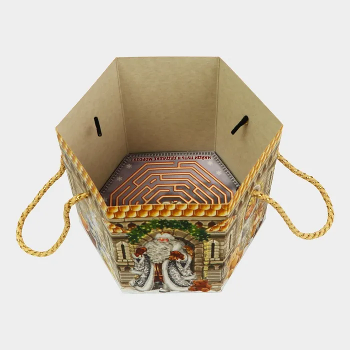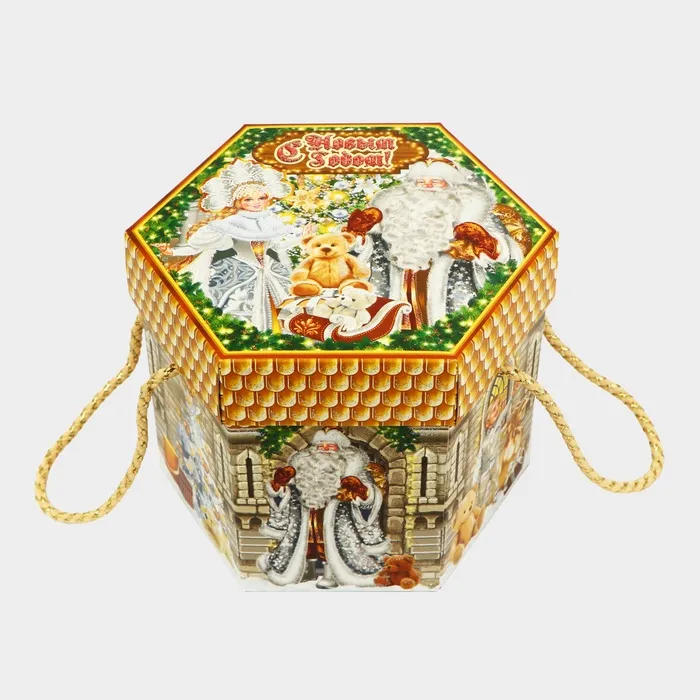 Коробка выполнена из качественных материалов, которые обеспечивают сохранность содержимого. Она имеет яркий и красочный дизайн, который отражает атмосферу Нового года.