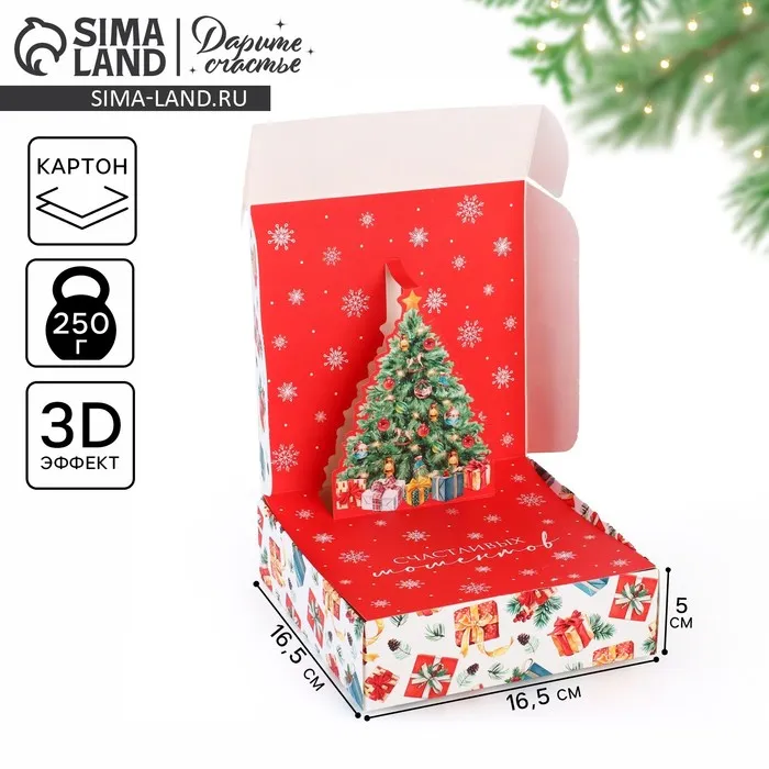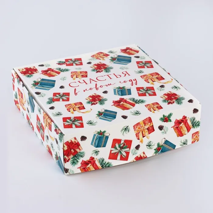 Подарочная коробка новогодняя складная «Счастья в новом году», 16.5 × 16,5 × 5 см — Характеристики