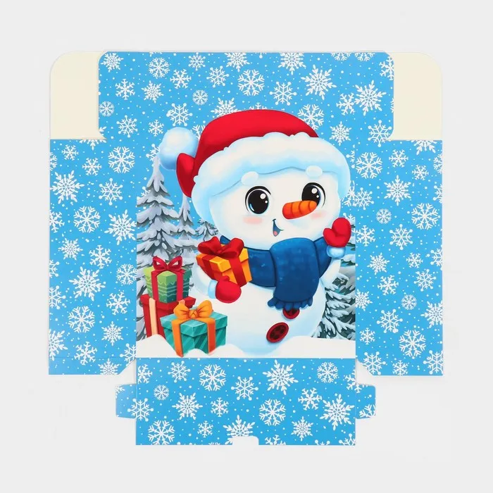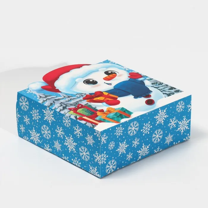 Подарочная коробка новогодняя складная «Снеговик», 25 х 25 х 10 см, Новый год — Характеристики