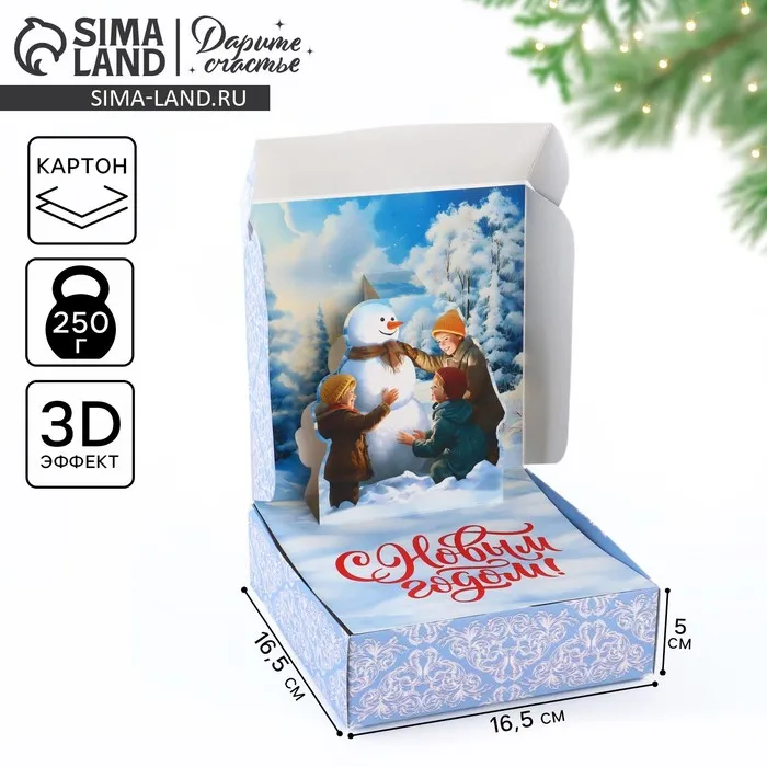 Подарочная коробка новогодняя складная «Зимняя сказка», 16.5 × 16,5 × 5 см — Характеристики