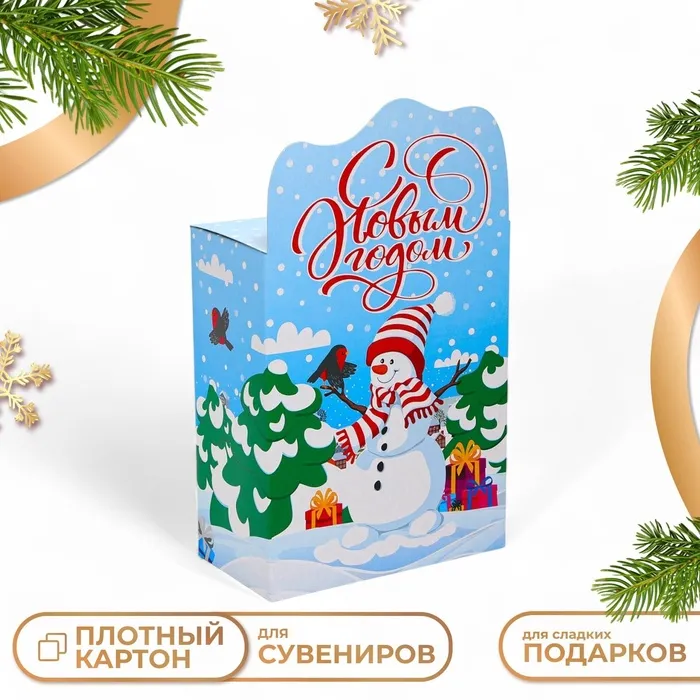 Коробка выполнена из качественных материалов, которые обеспечивают сохранность содержимого. Она имеет яркий и красочный дизайн, который отражает атмосферу Нового года.