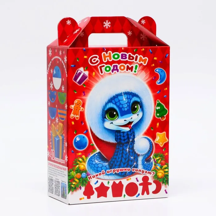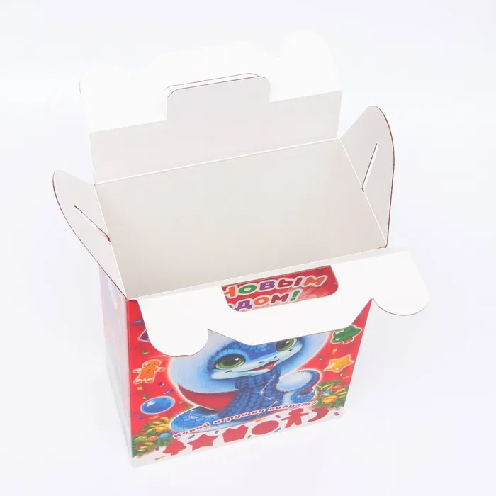 Коробка выполнена из качественных материалов, которые обеспечивают сохранность содержимого. Она имеет яркий и красочный дизайн, который отражает атмосферу Нового года.