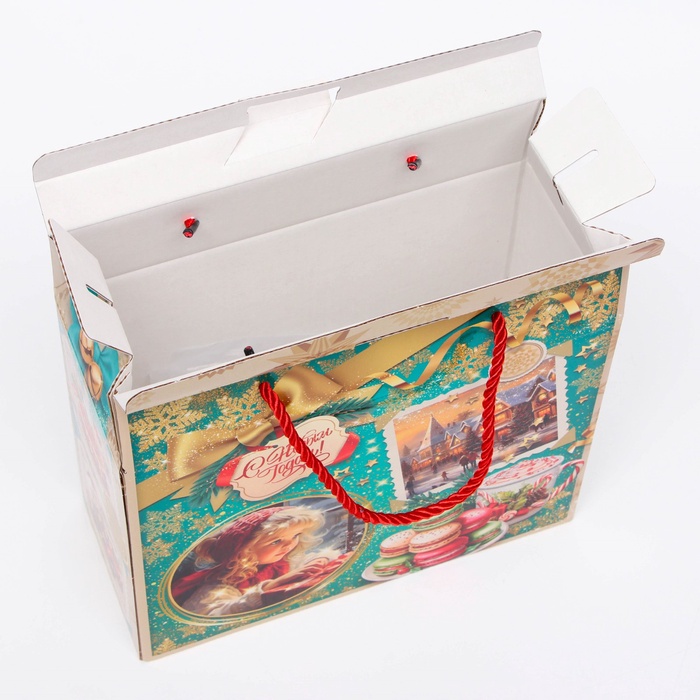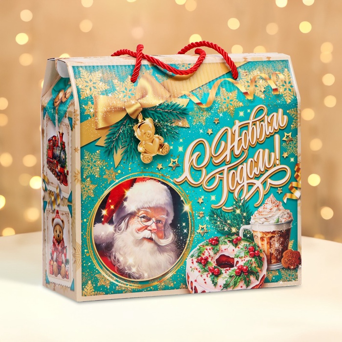 Коробка выполнена из качественных материалов, которые обеспечивают сохранность содержимого. Она имеет яркий и красочный дизайн, который отражает атмосферу Нового года.