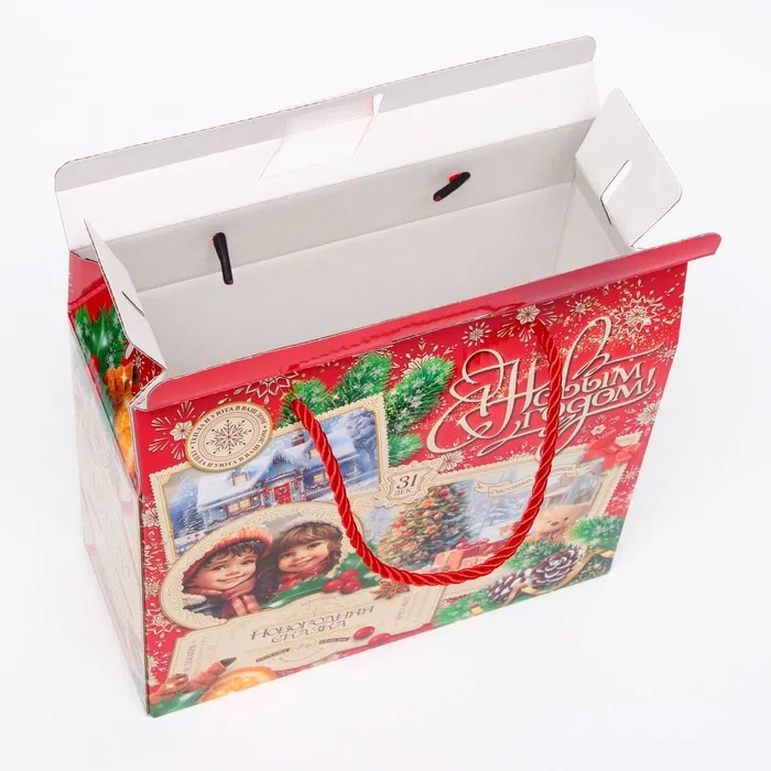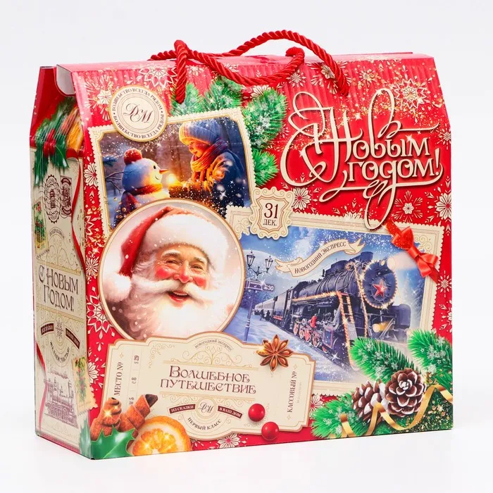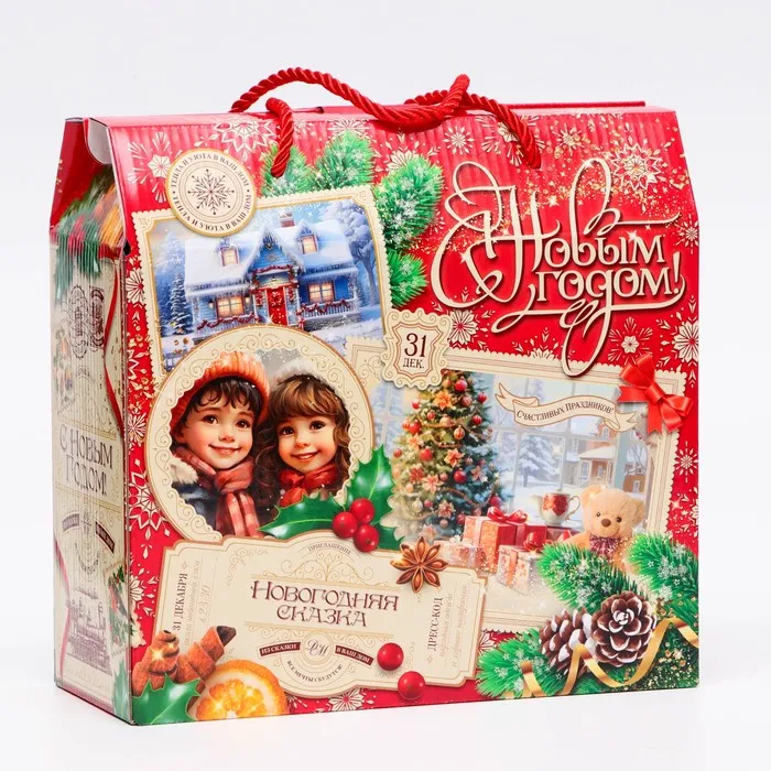 Коробка выполнена из качественных материалов, которые обеспечивают сохранность содержимого. Она имеет яркий и красочный дизайн, который отражает атмосферу Нового года.