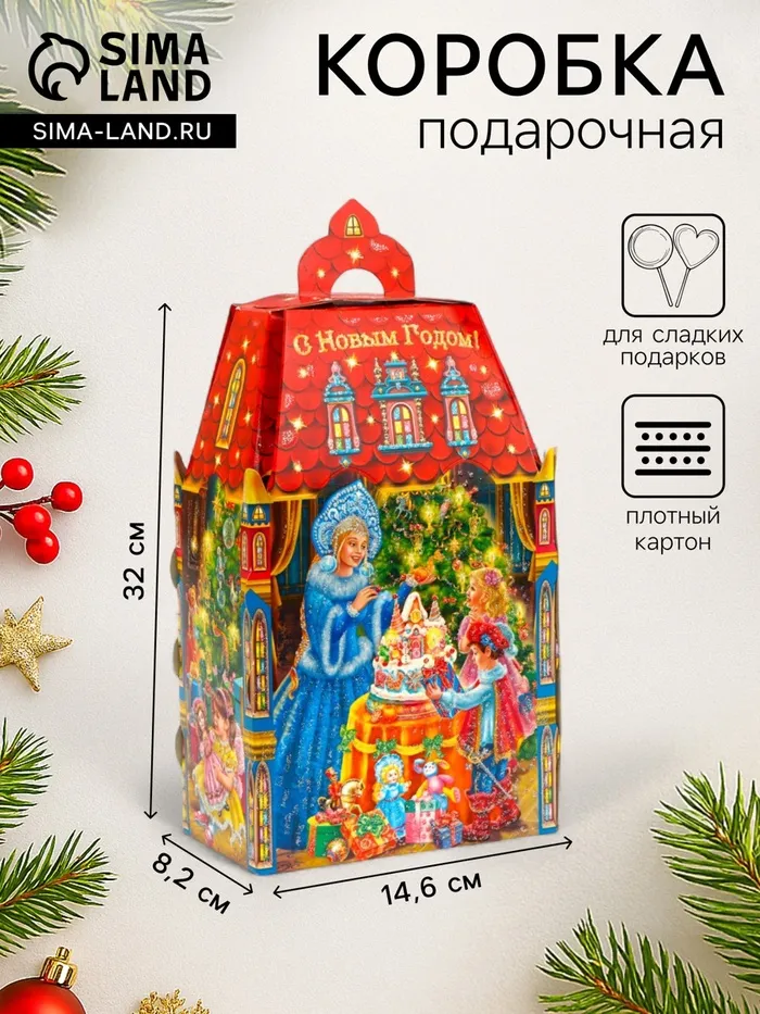Подарочная коробка новогодняя Замок малый "Сияние праздника" 14,6 х 8,2 х 32 см. — Характеристики