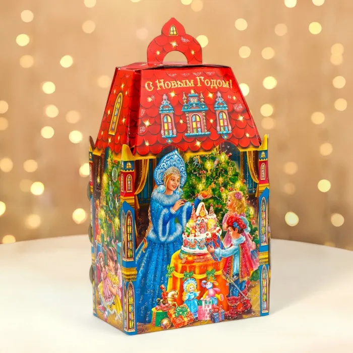 Коробка выполнена из качественных материалов, которые обеспечивают сохранность содержимого. Она имеет яркий и красочный дизайн, который отражает атмосферу Нового года.