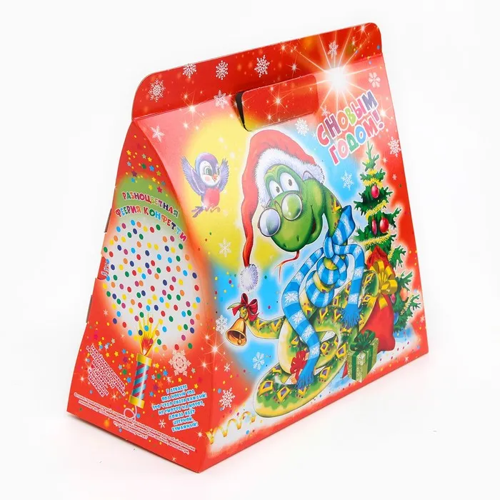 Коробка выполнена из качественных материалов, которые обеспечивают сохранность содержимого. Она имеет яркий и красочный дизайн, который отражает атмосферу Нового года.