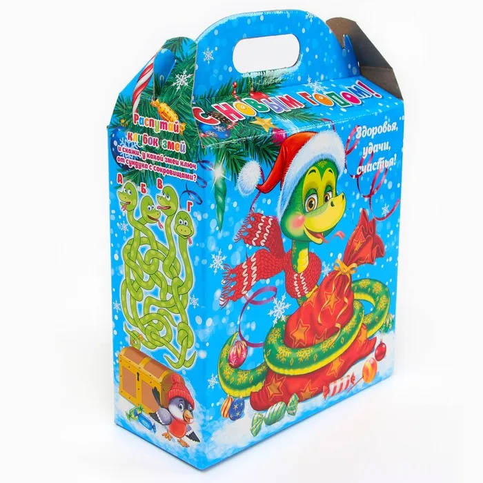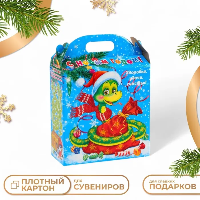 Подарочная коробка новогодняя Змейка с подарком 21 (25.5) х 19.2×8 см — Характеристики