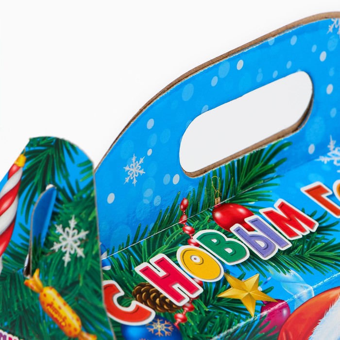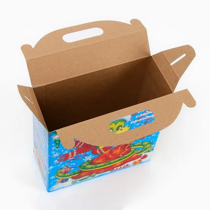 Коробка выполнена из качественных материалов, которые обеспечивают сохранность содержимого. Она имеет яркий и красочный дизайн, который отражает атмосферу Нового года.