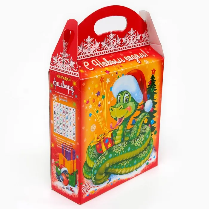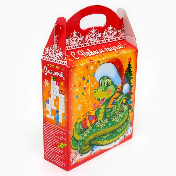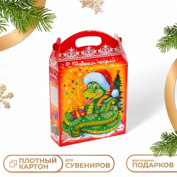 Подарочная коробка новогодняя «Змейка в шапочке Символ года», упаковка, 25.5 (33) х 23.5×8 см — Характеристики
