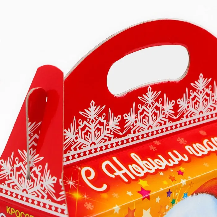 Коробка выполнена из качественных материалов, которые обеспечивают сохранность содержимого. Она имеет яркий и красочный дизайн, который отражает атмосферу Нового года.