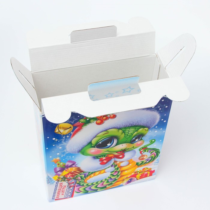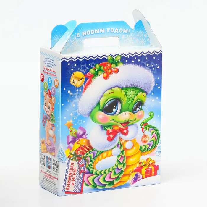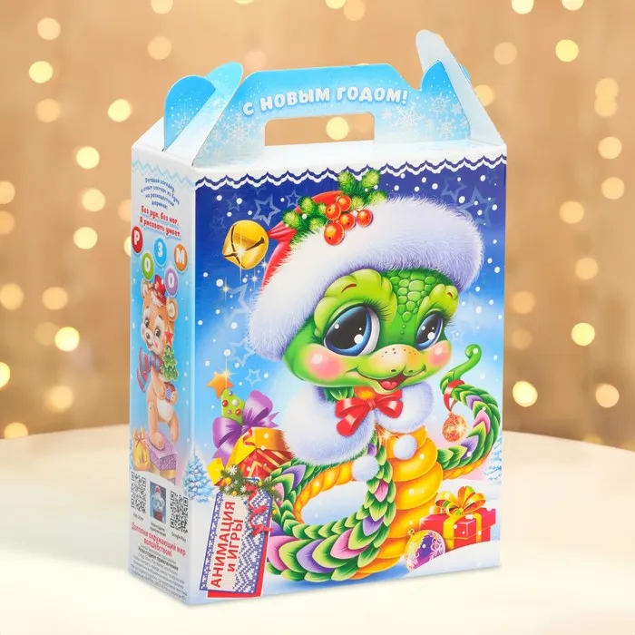 Подарочная новогодняя коробка предназначена для использования на утренниках и для подарков под ёлку для детей. Эта коробка создана специально для того, чтобы сделать праздник еще более ярким и запоминающимся.