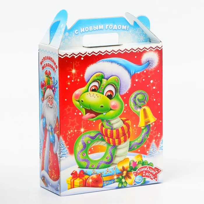 Коробка выполнена из качественных материалов, которые обеспечивают сохранность содержимого. Она имеет яркий и красочный дизайн, который отражает атмосферу Нового года.